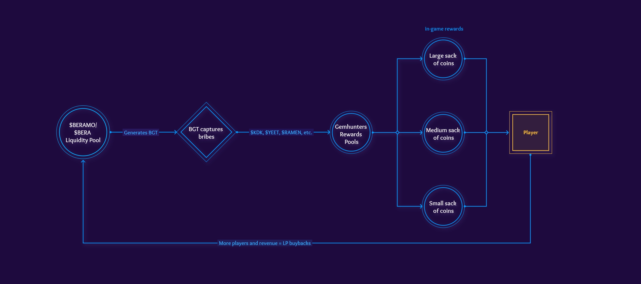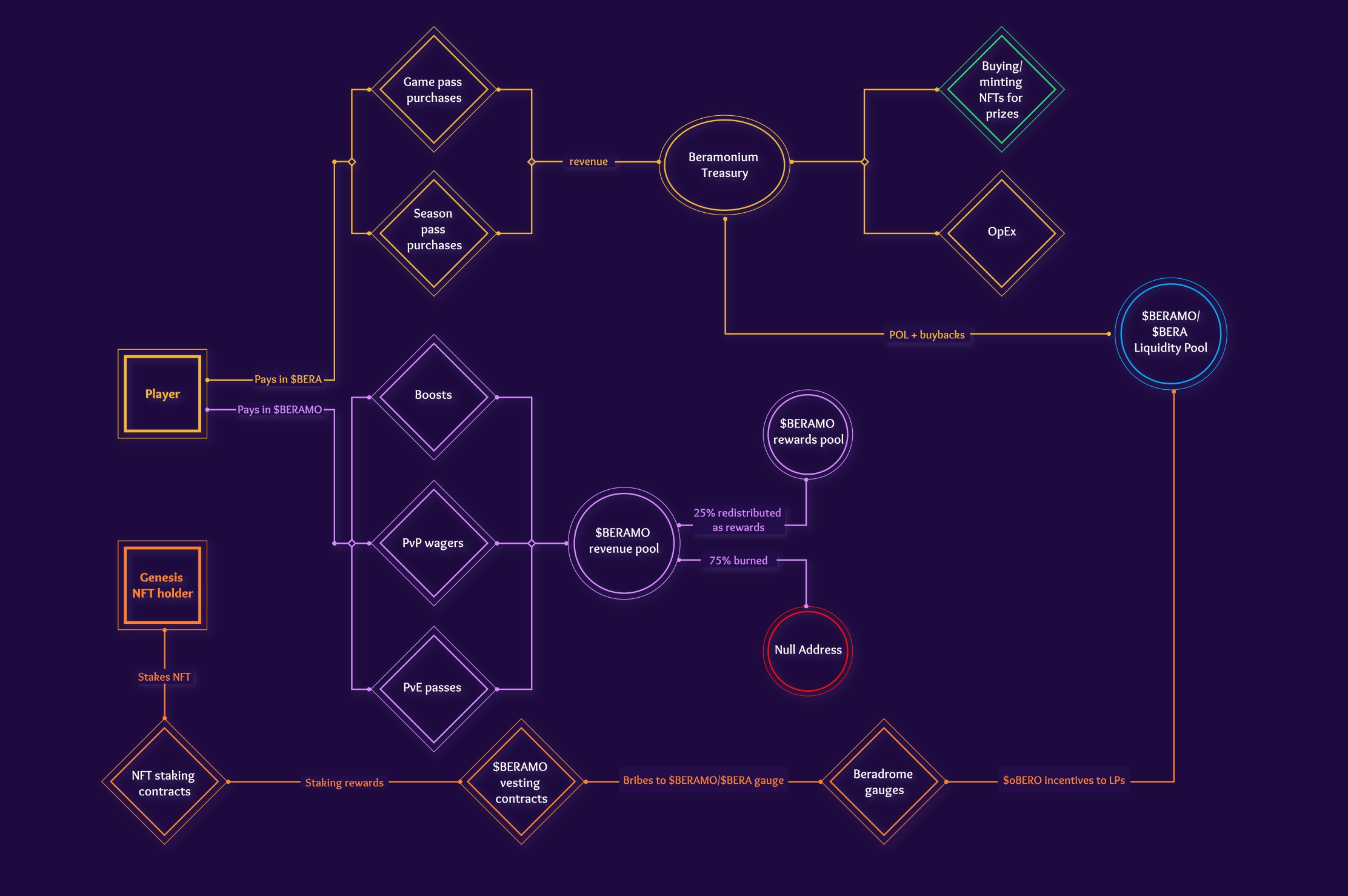 At Beramonium, we're building a premiere, Berachain-exclusive gaming studio — not just a single game. Gemhunters is just the beginning. $BERAMO is the core of the Beramonium ecosystem, fueling in-game purchases and evolving with every game we build. Designed for sustainability and real utility, $BERAMO drives long-term value through deflationary mechanics and meaningful in-game use cases. Our tokenomics are built to last, shaping a thriving, player-driven economy and redefining web3 gaming for years to come.